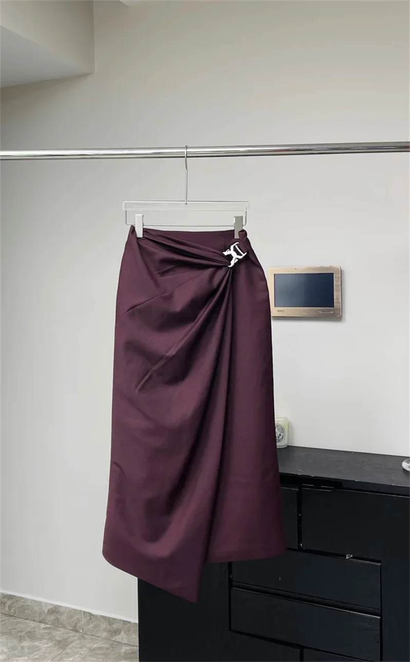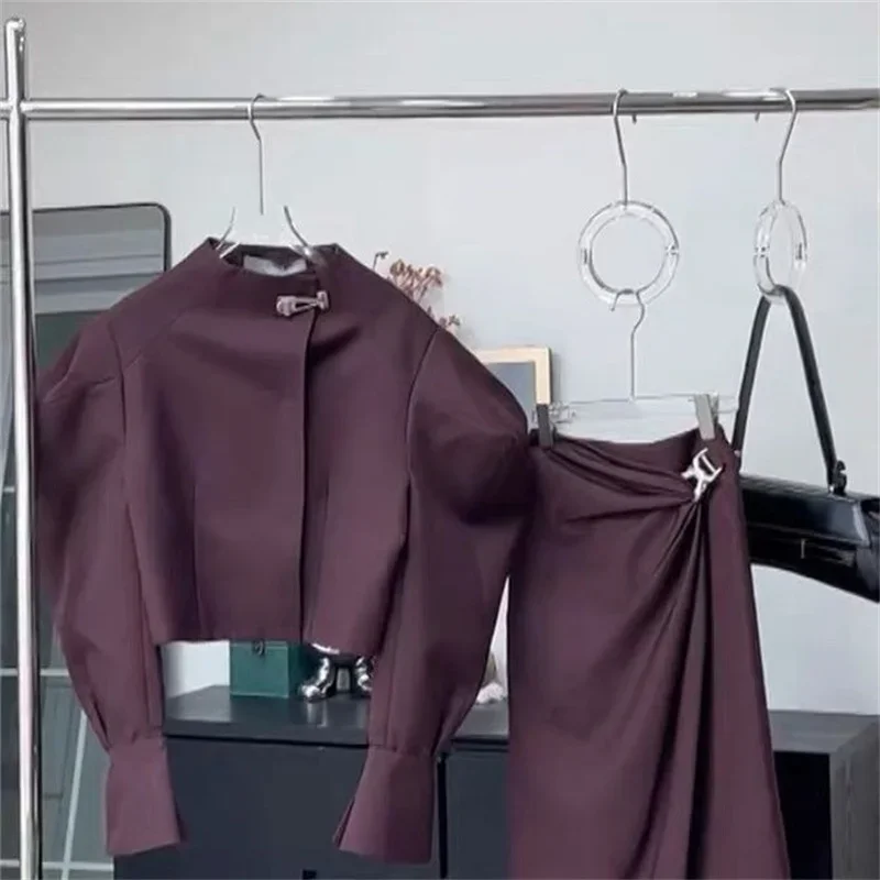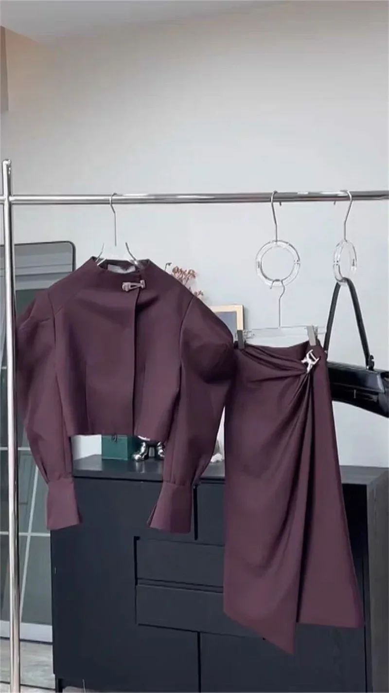 Autumn New Fashion Designer Women's Skirt Suit Elegant Office Lady Solid Color Short Jacket + Fold Long Skirt Two-Piece Set J309