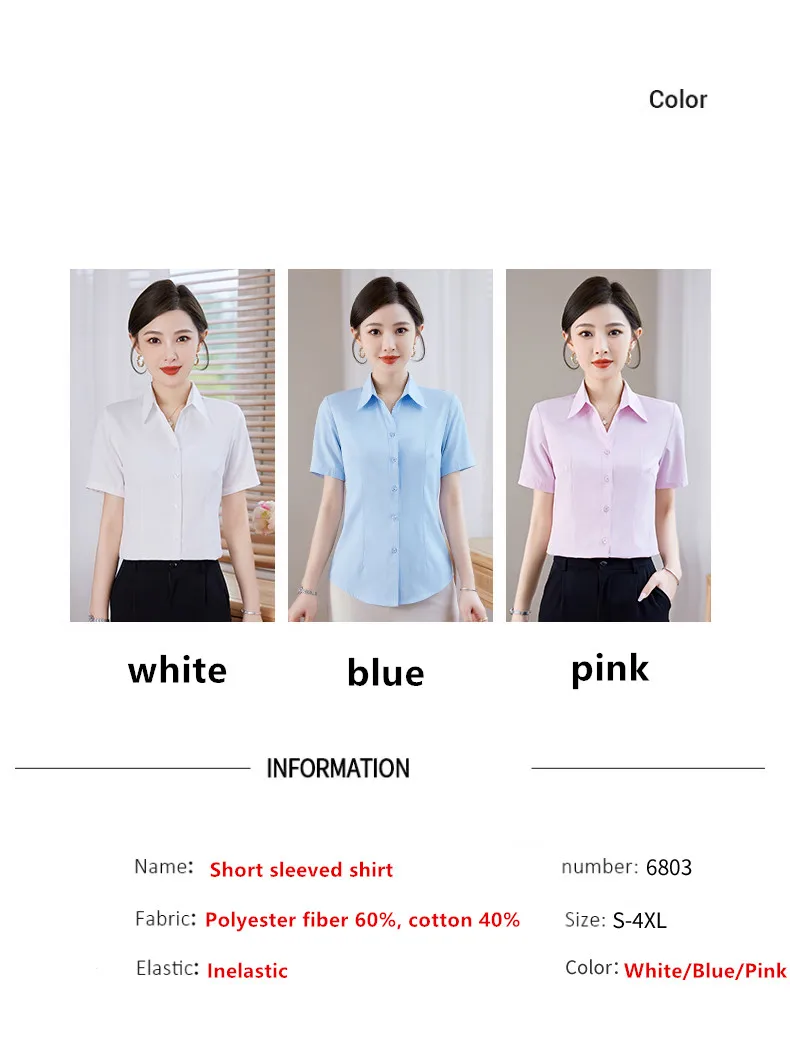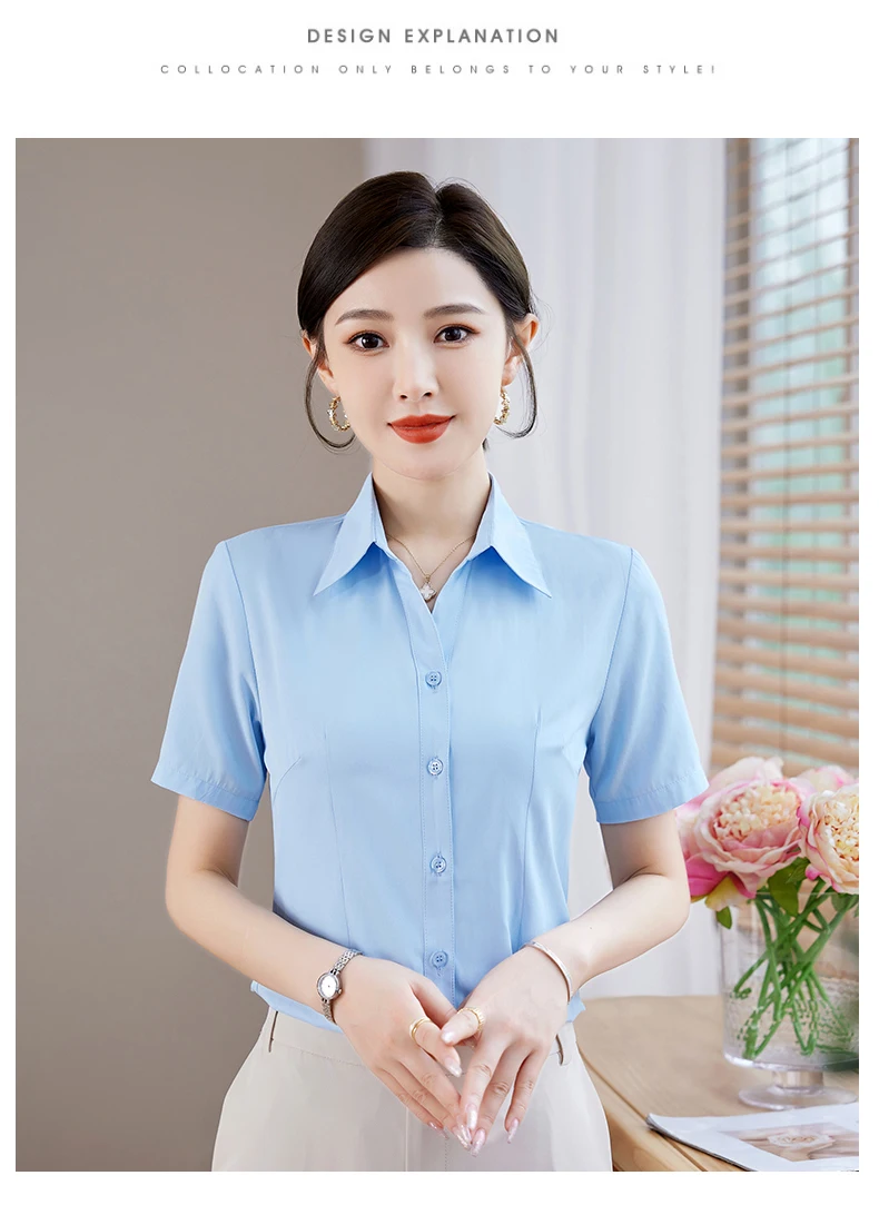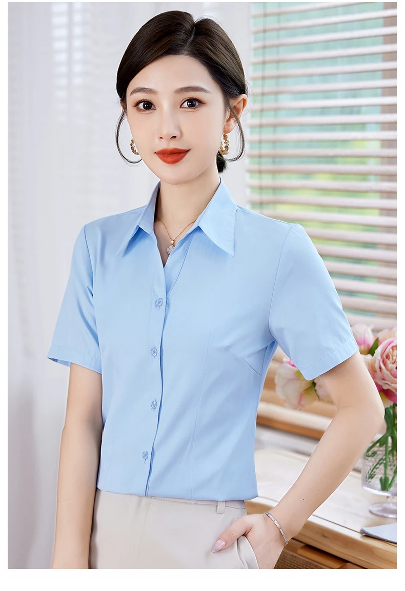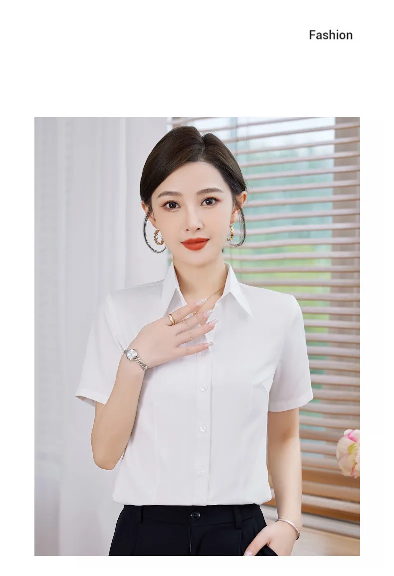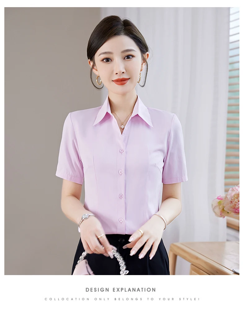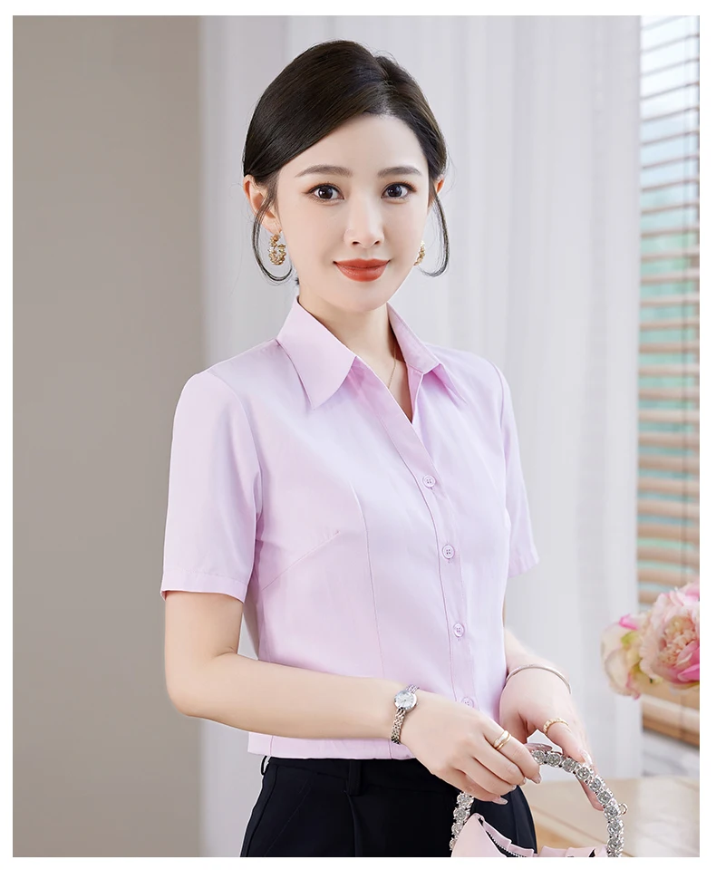 Model Number: yuzhu-6803,New summer short sleeved slimming professional formal work clothes lining women's fashionable temperament versatile commuting collar shirt Lady