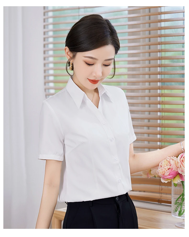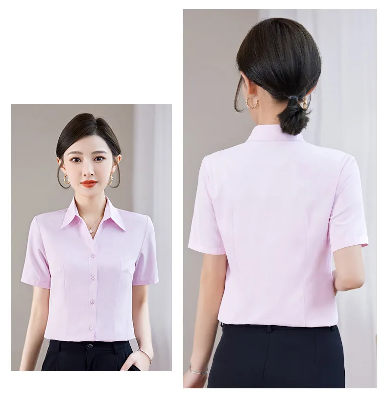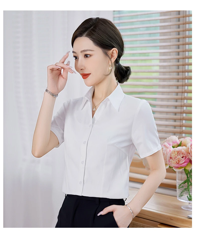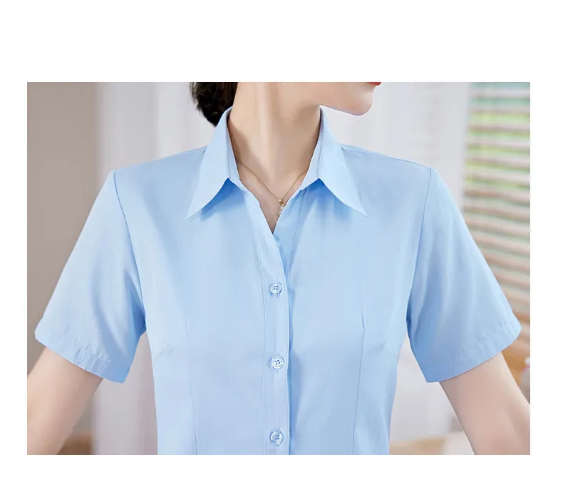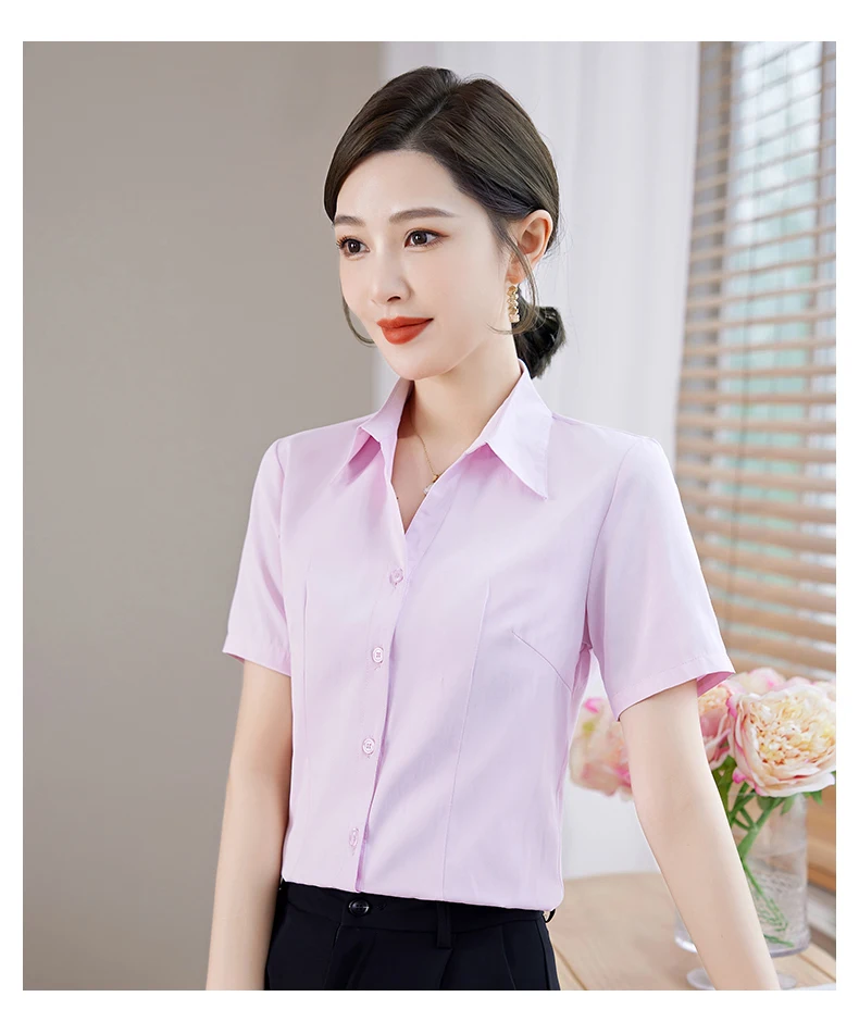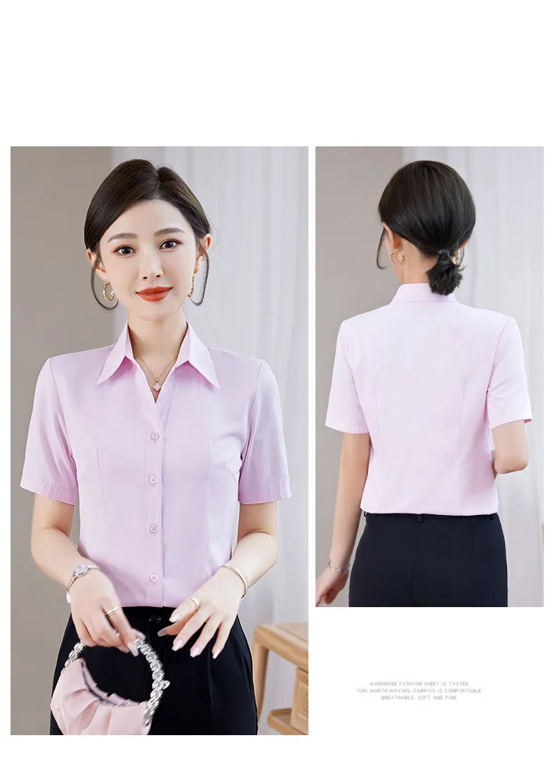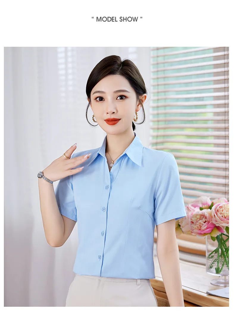 Model Number: yuzhu-6803,New summer short sleeved slimming professional formal work clothes lining women's fashionable temperament versatile commuting collar shirt Lady