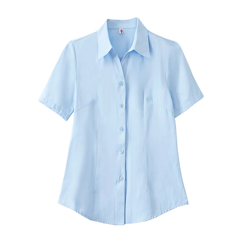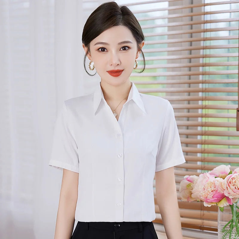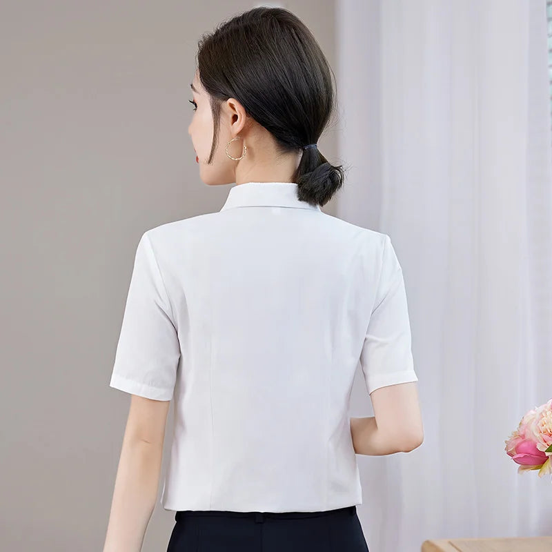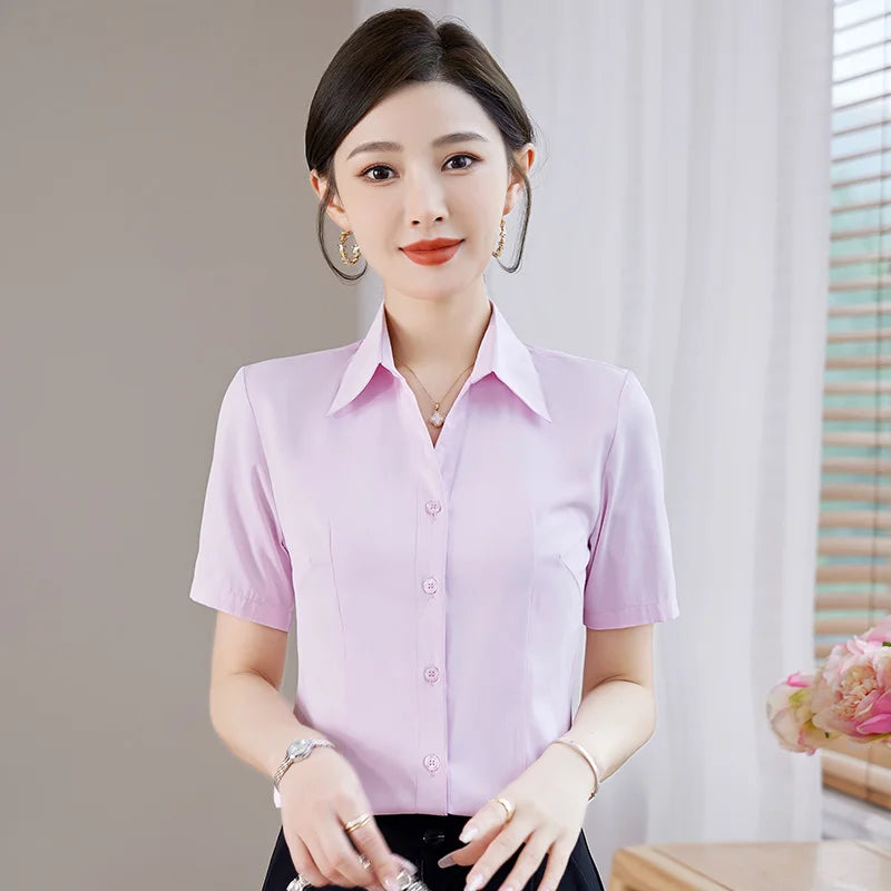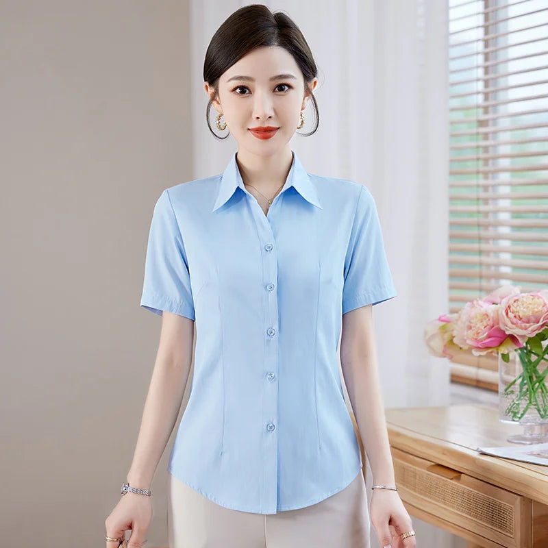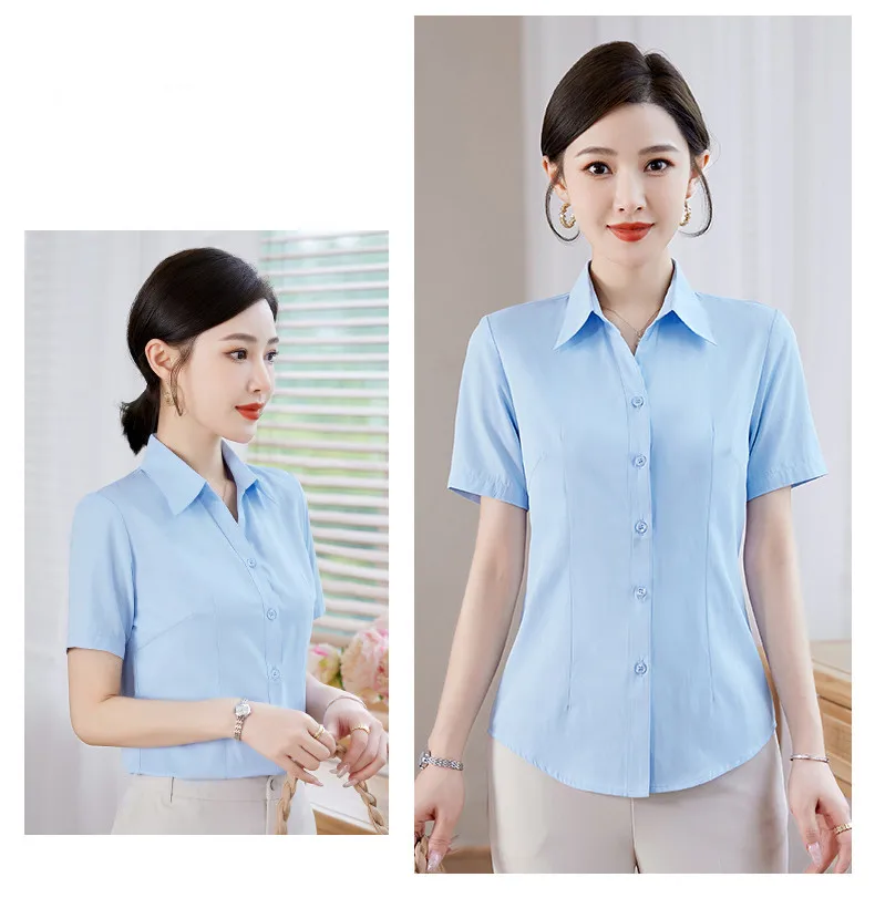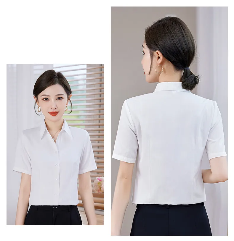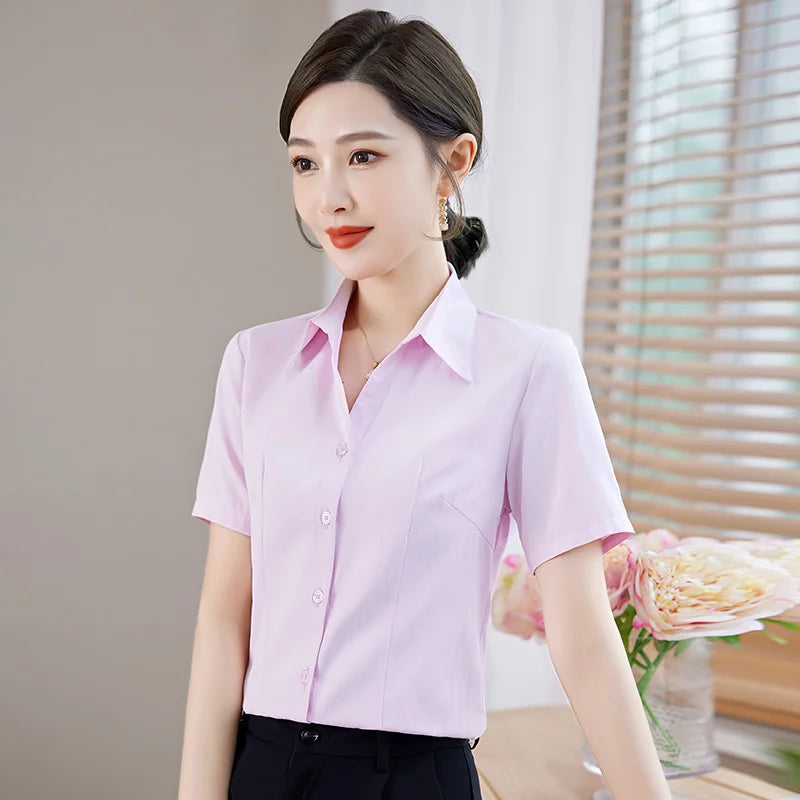 Model Number: yuzhu-6803,New summer short sleeved slimming professional formal work clothes lining women's fashionable temperament versatile commuting collar shirt Lady