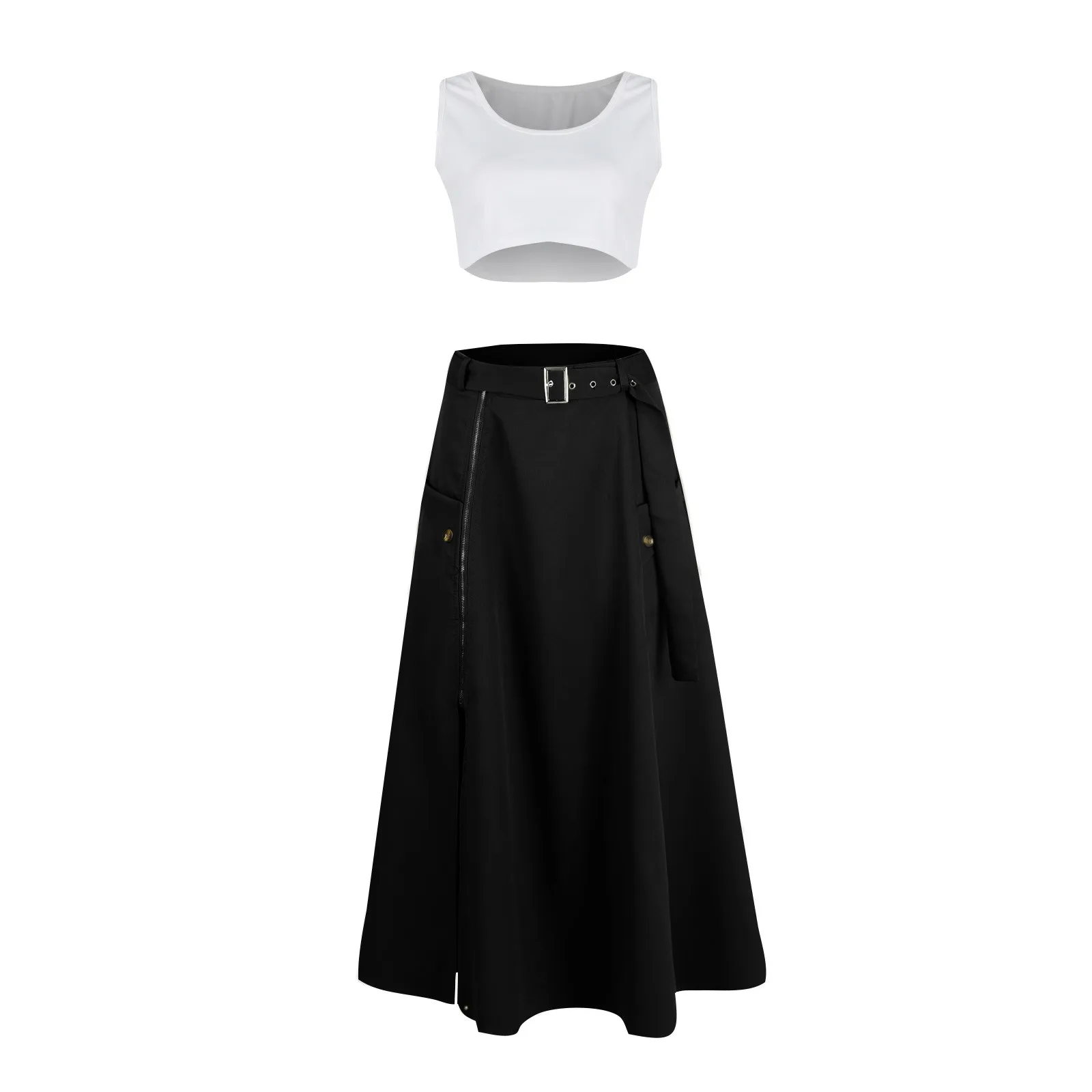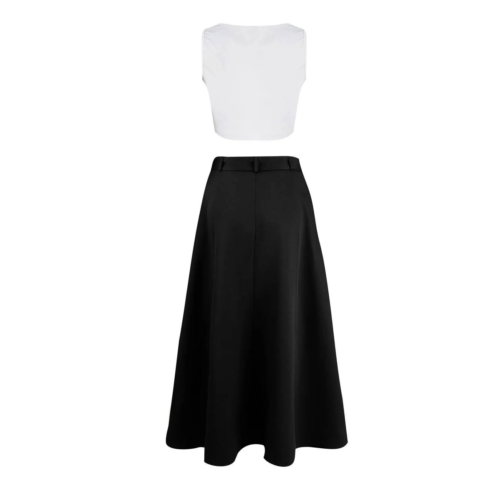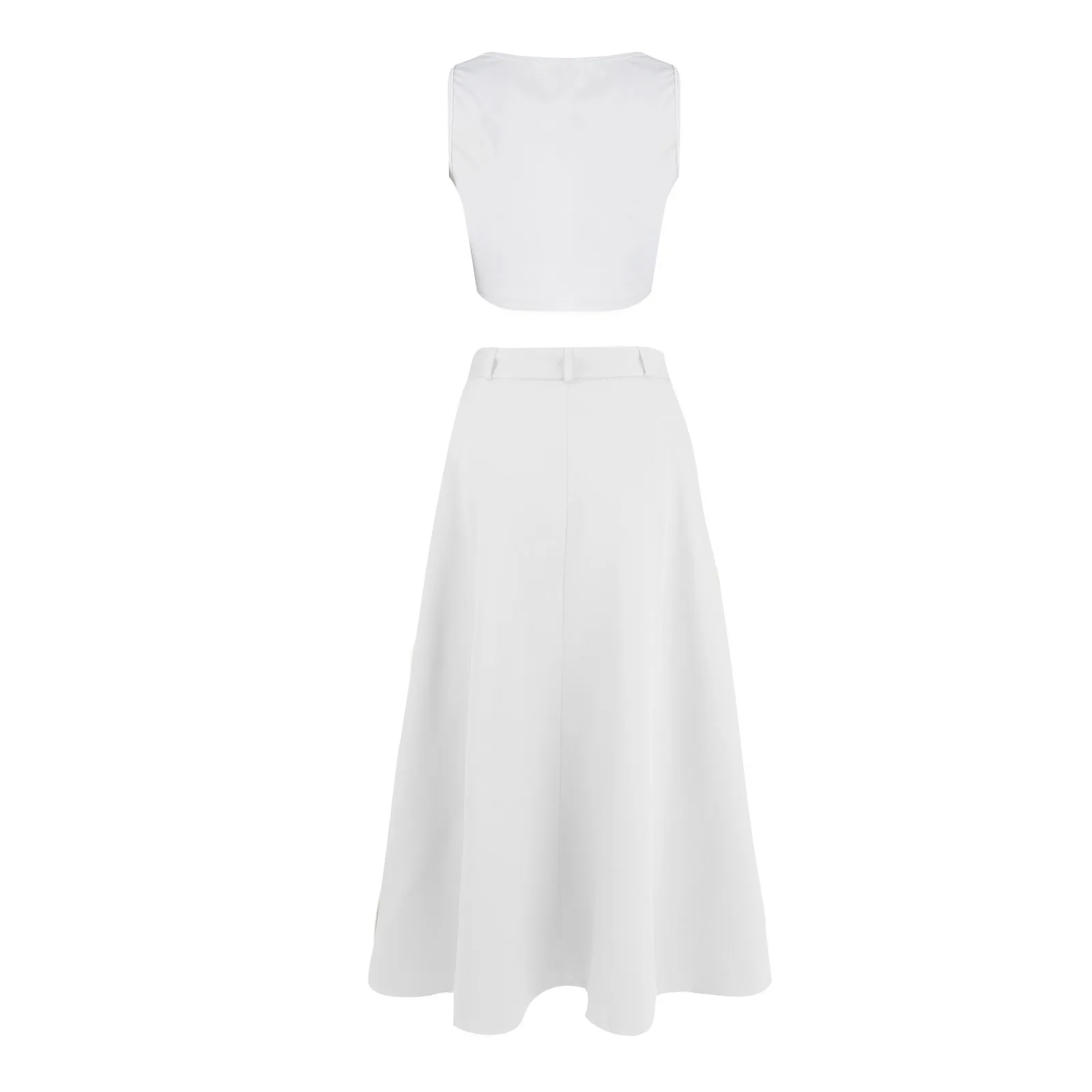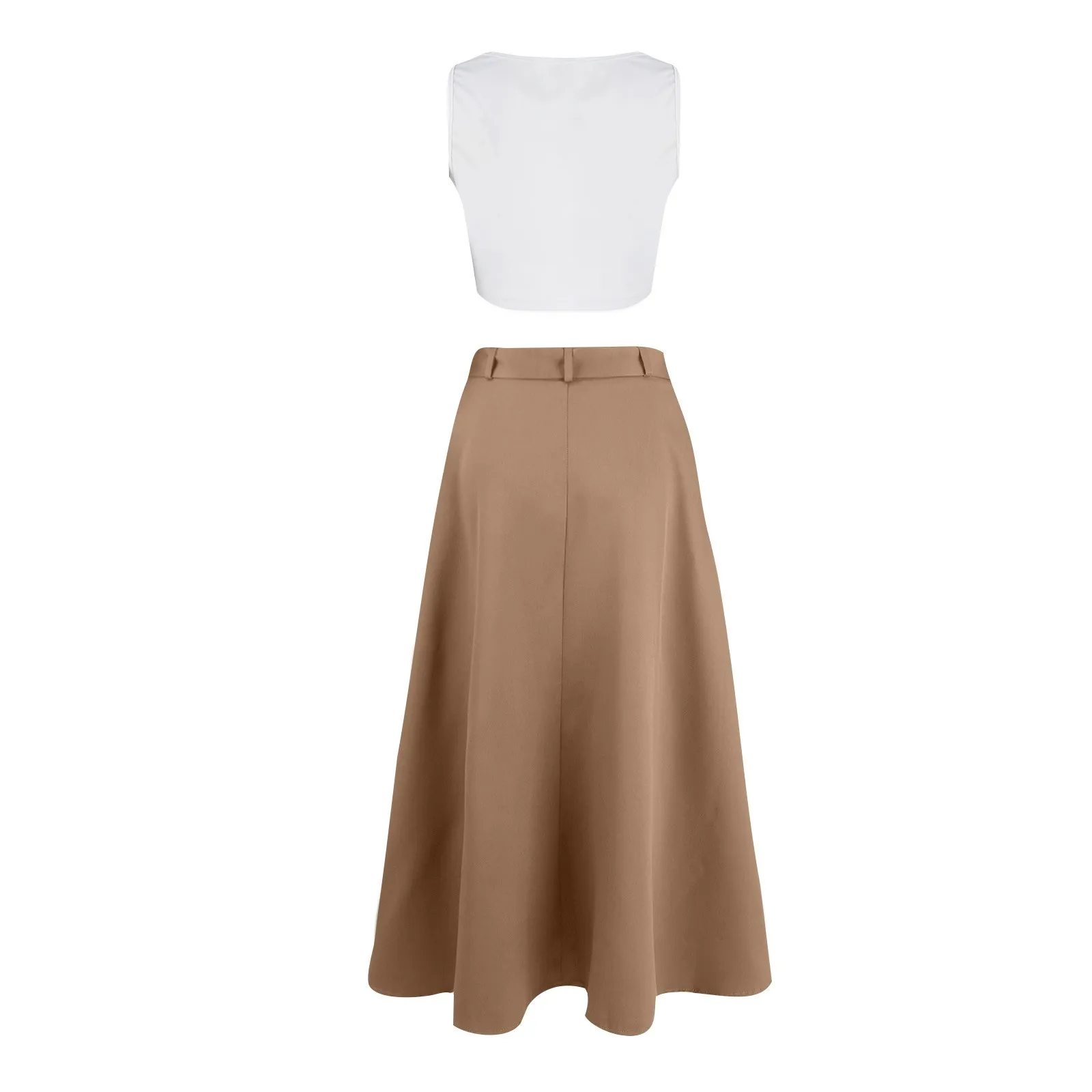 Women's Fashion Casual Solid Color Vest Skirt Long Skirt Set