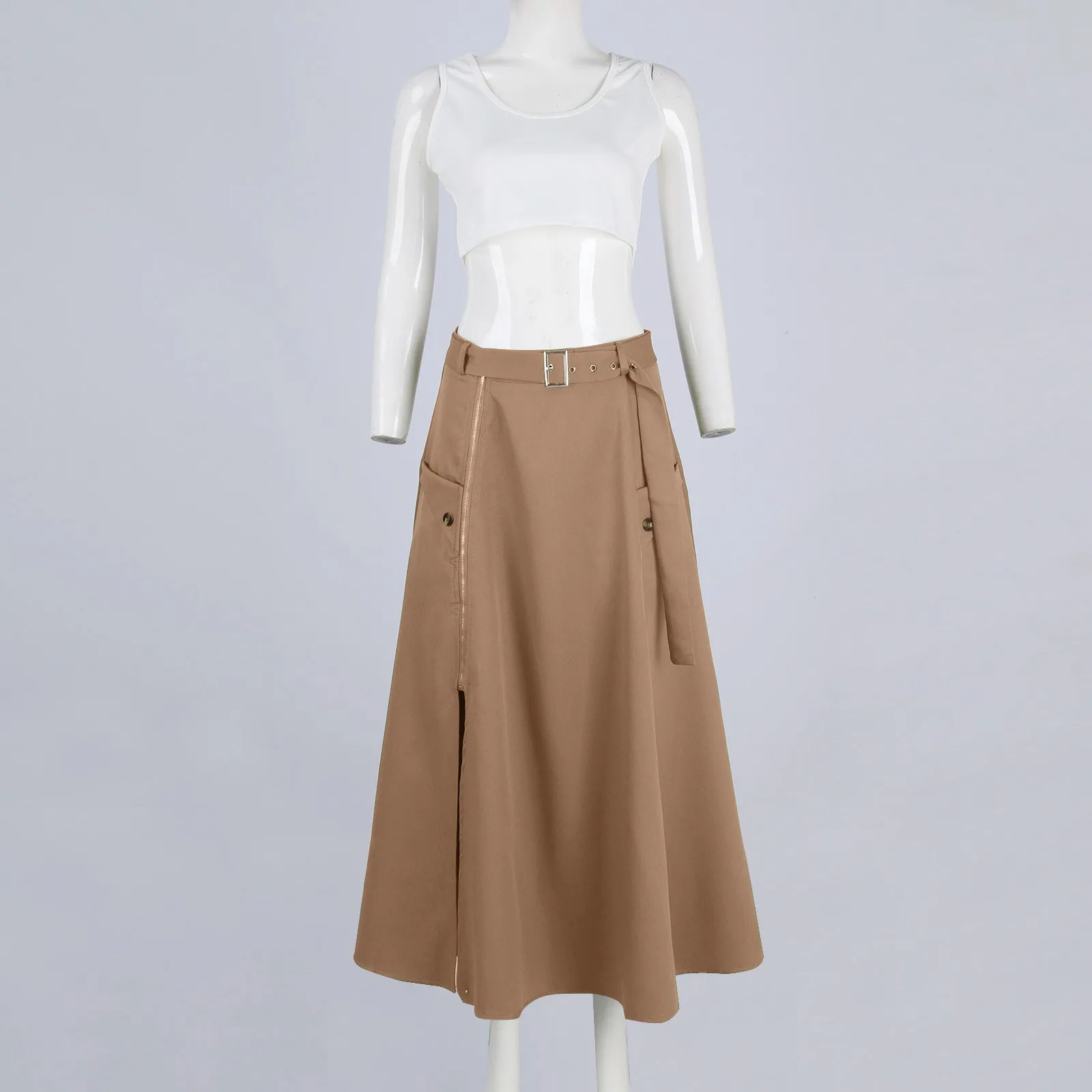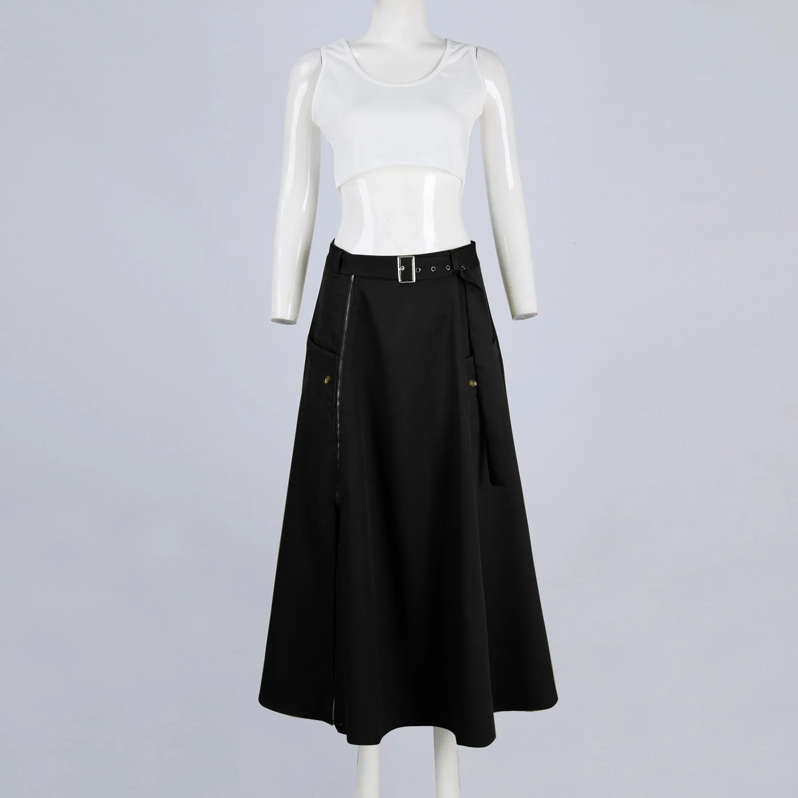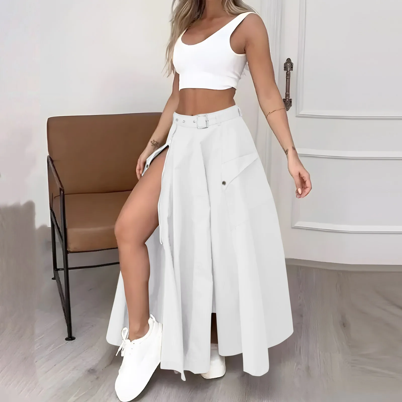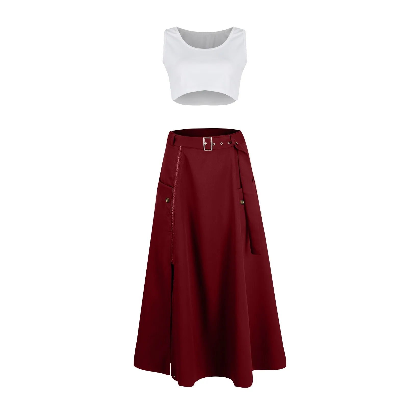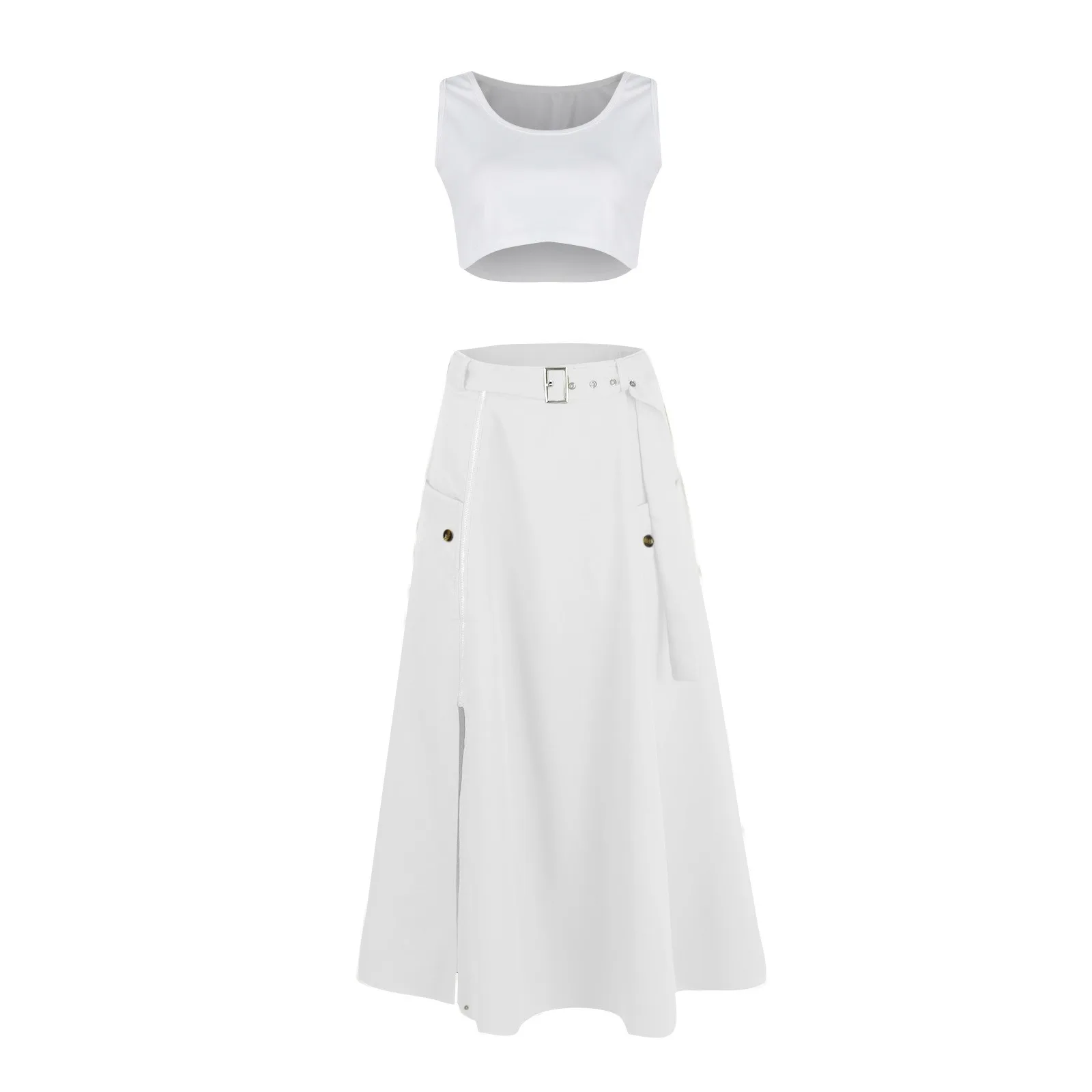 Women's Fashion Casual Solid Color Vest Skirt Long Skirt Set
