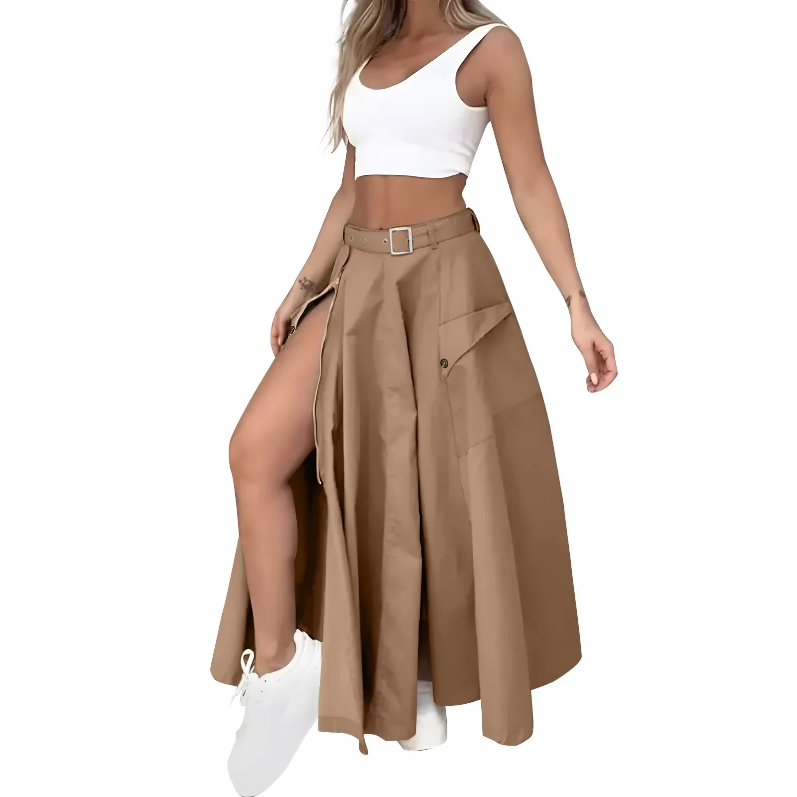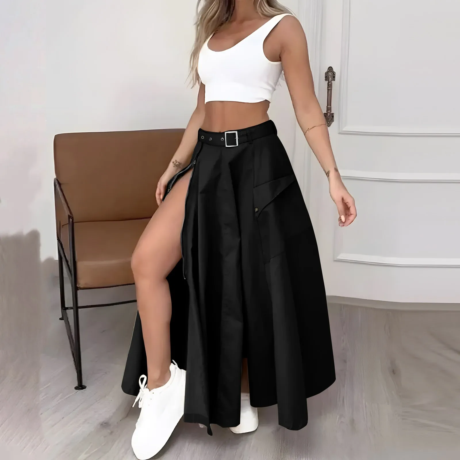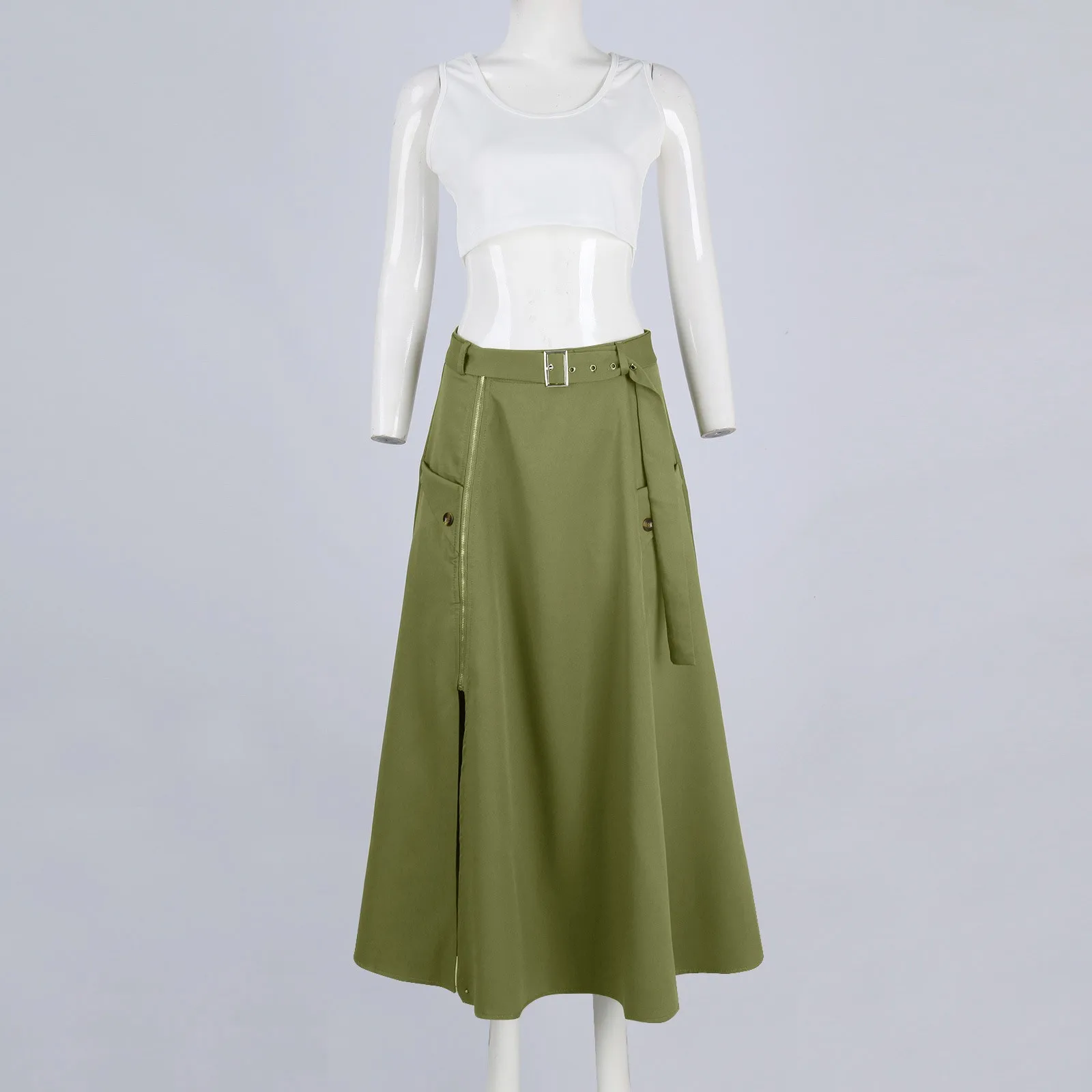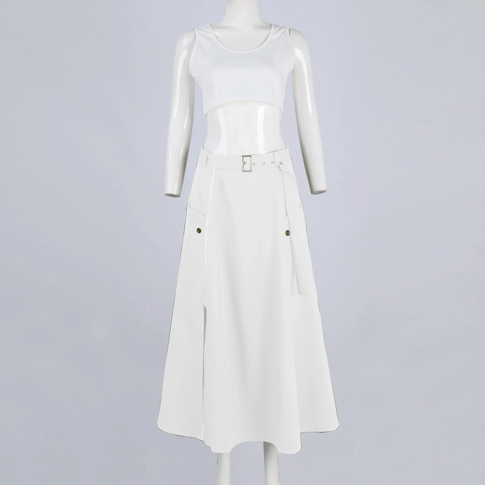 Women's Fashion Casual Solid Color Vest Skirt Long Skirt Set