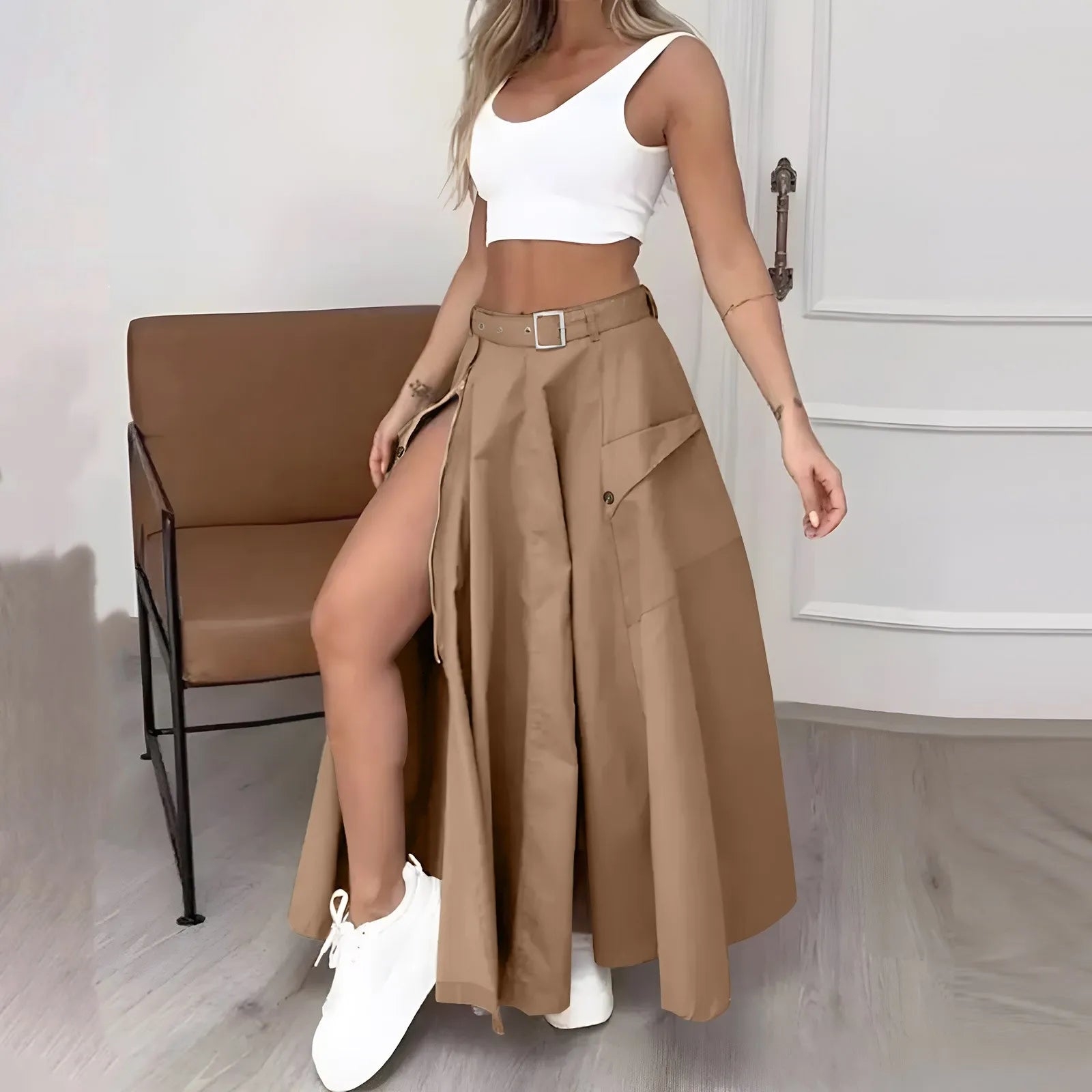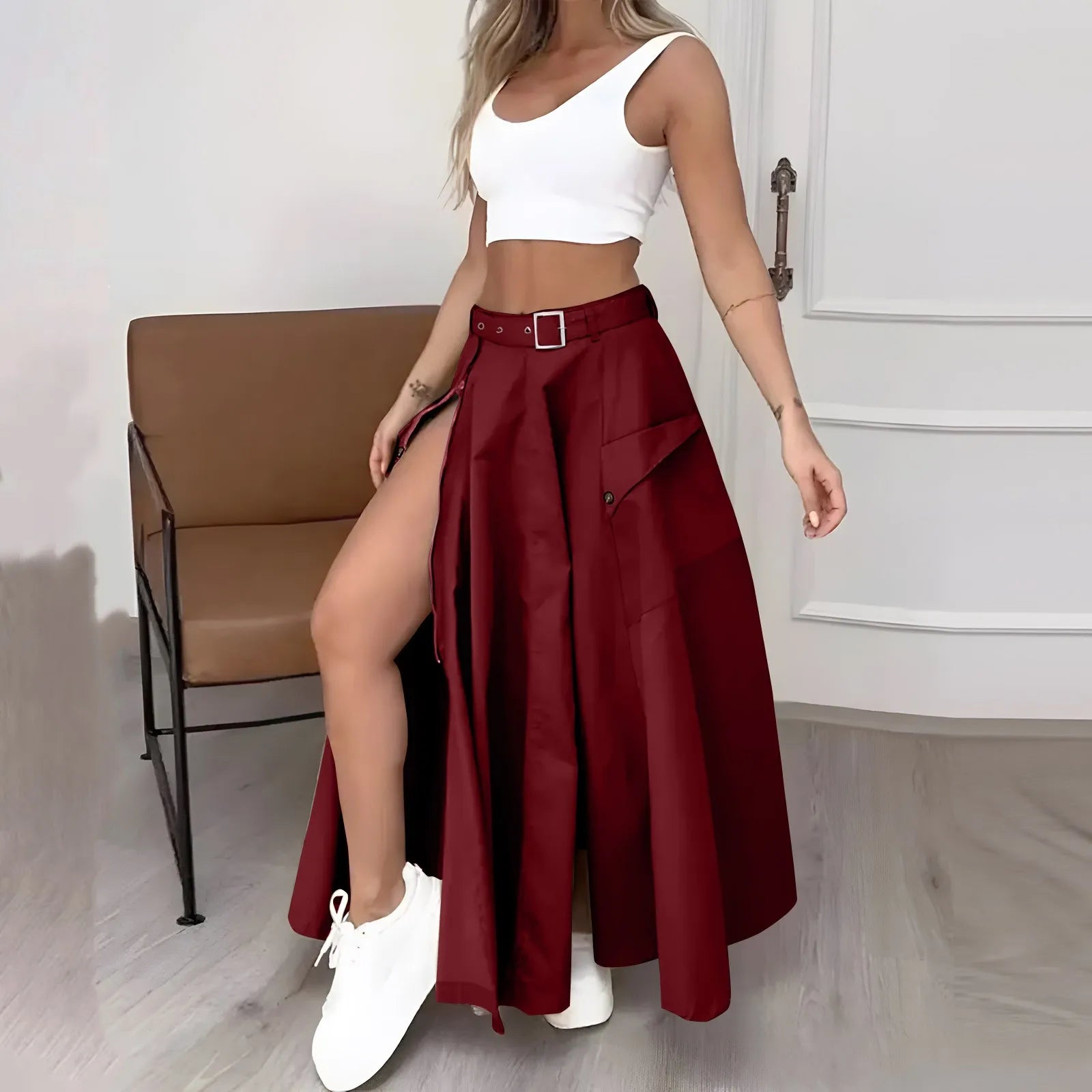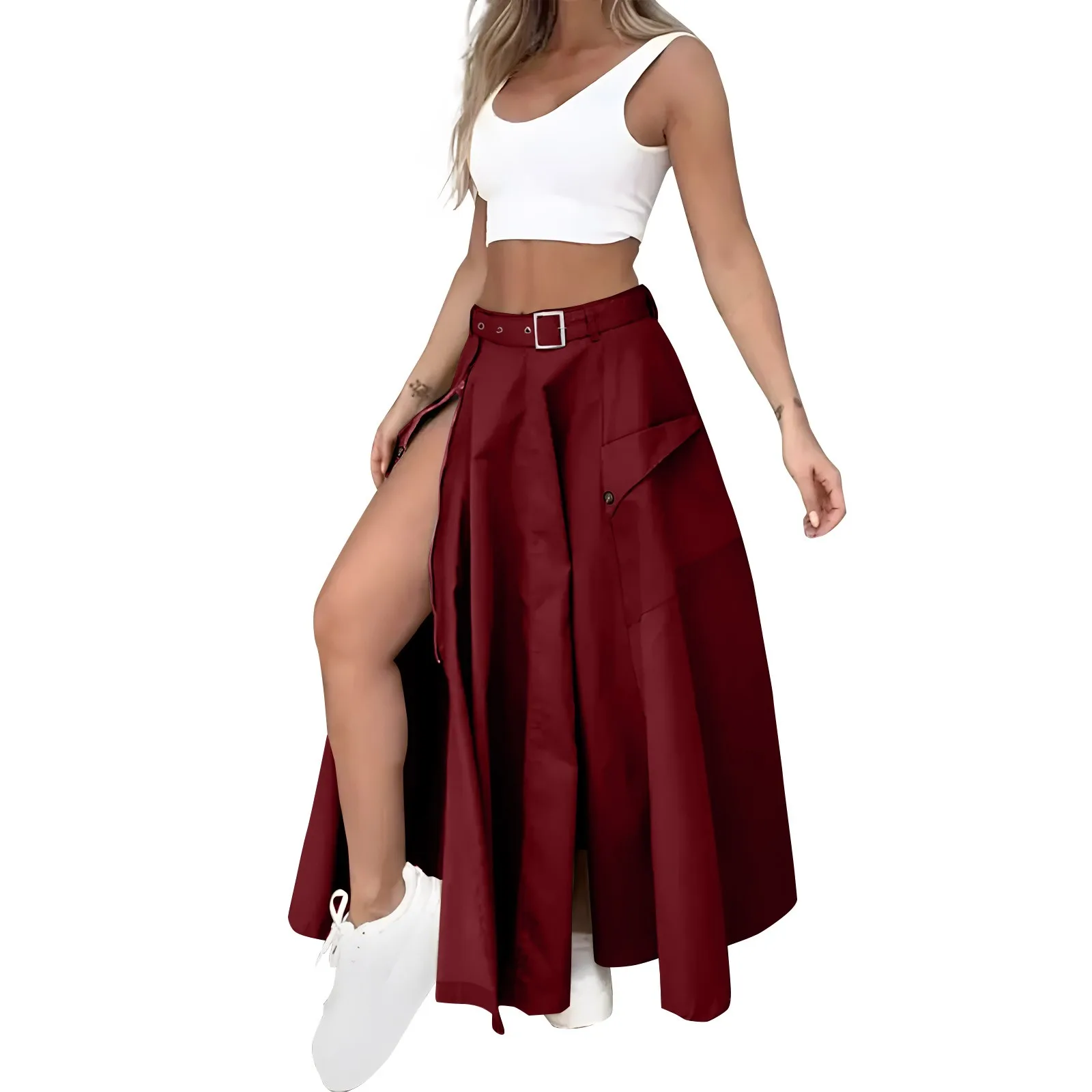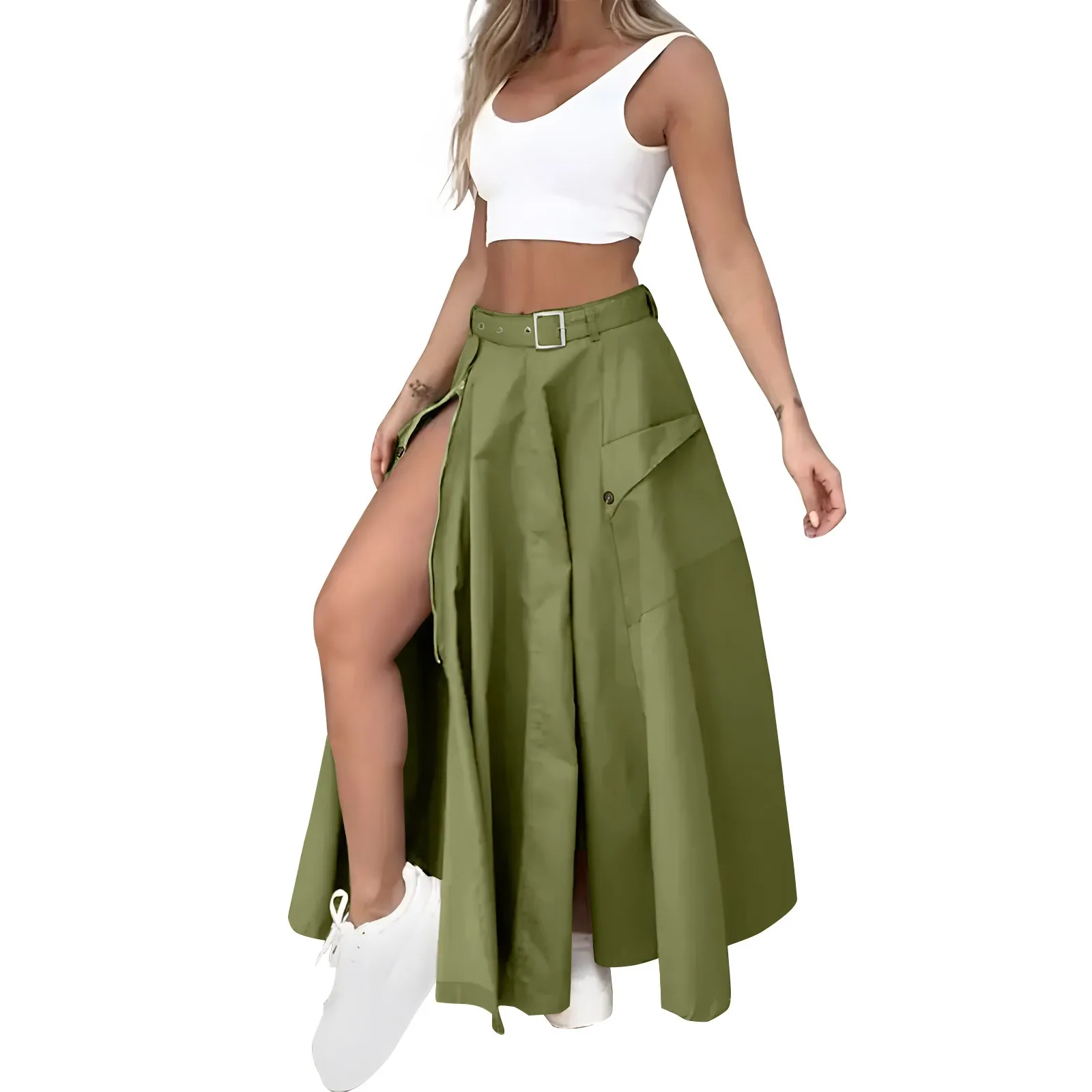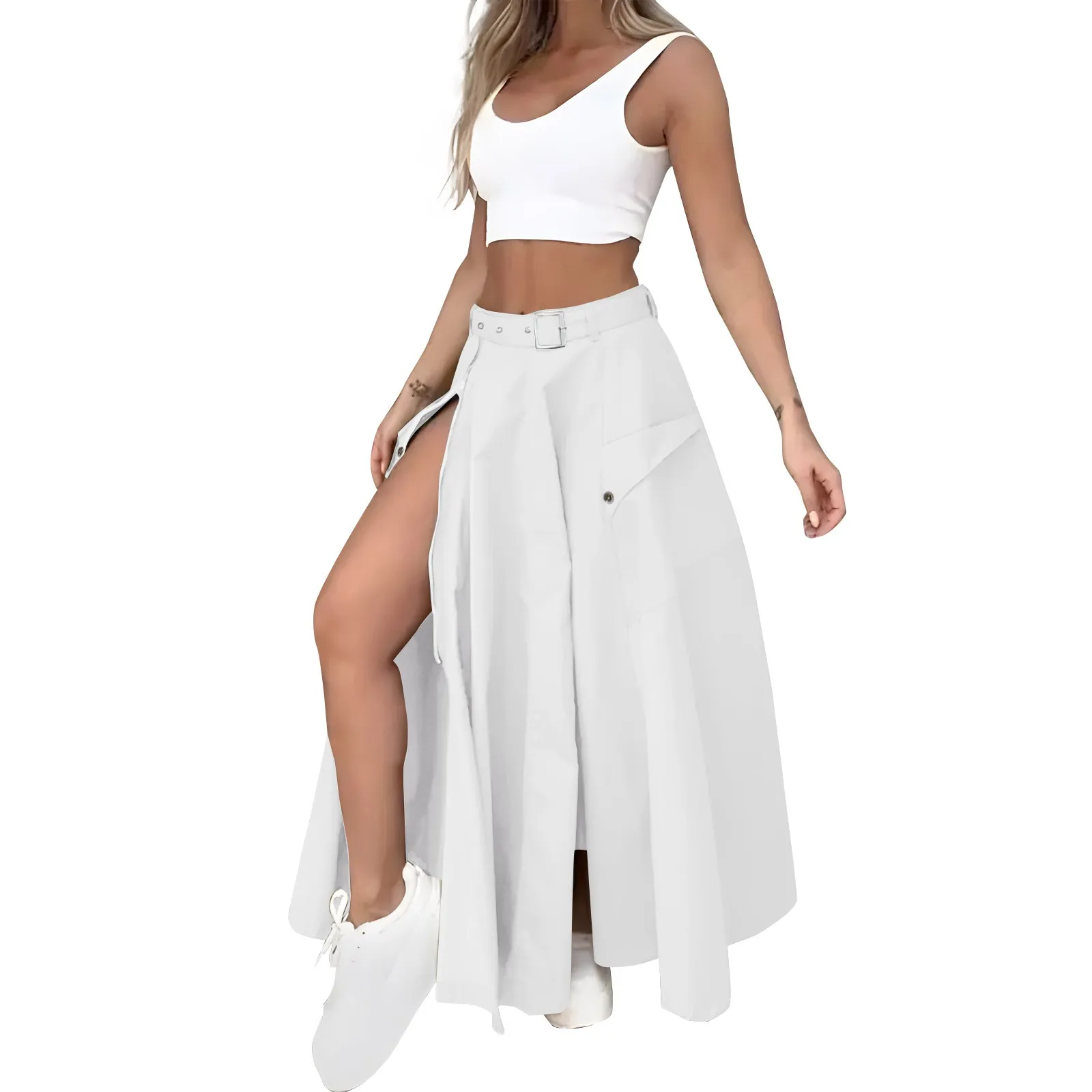 Women's Fashion Casual Solid Color Vest Skirt Long Skirt Set