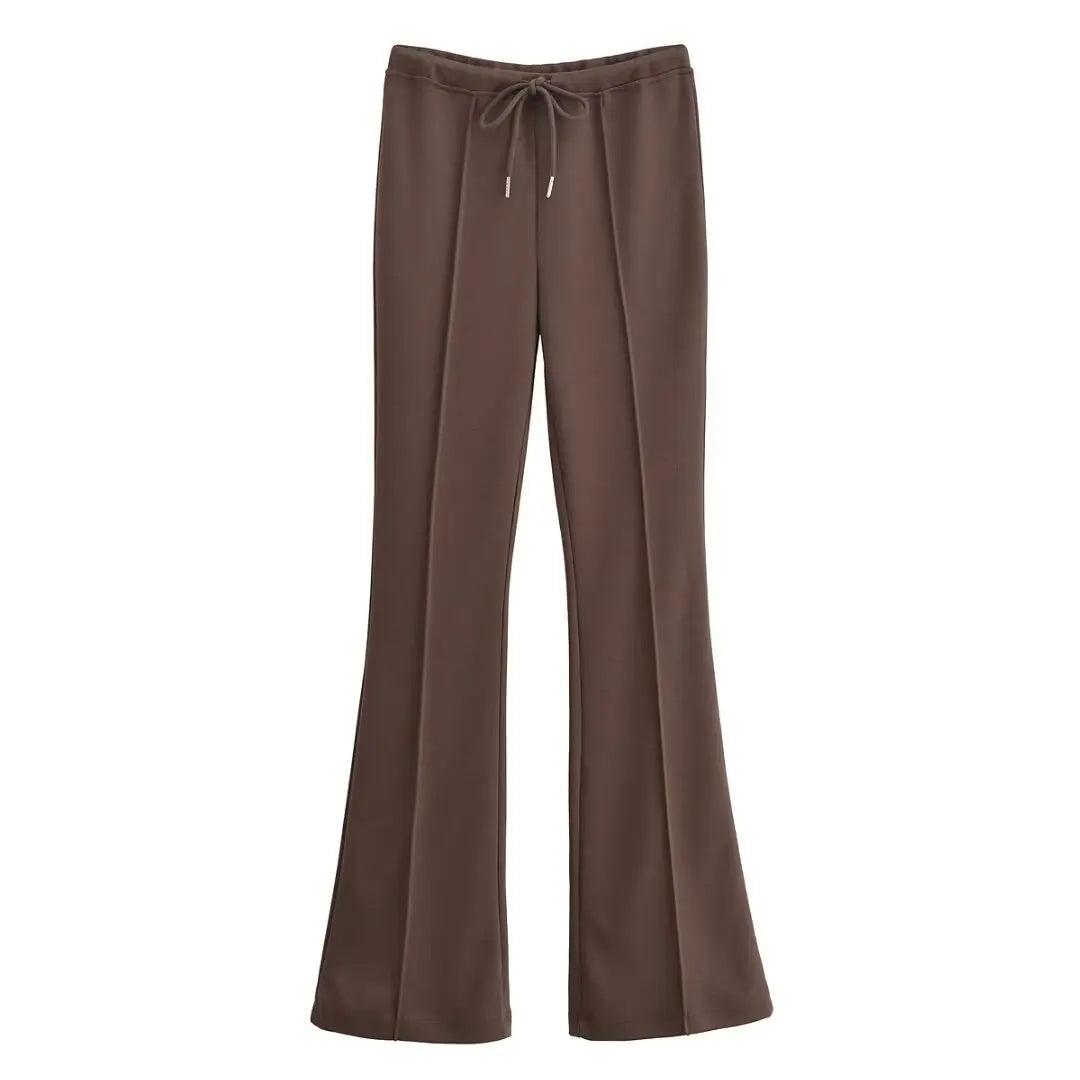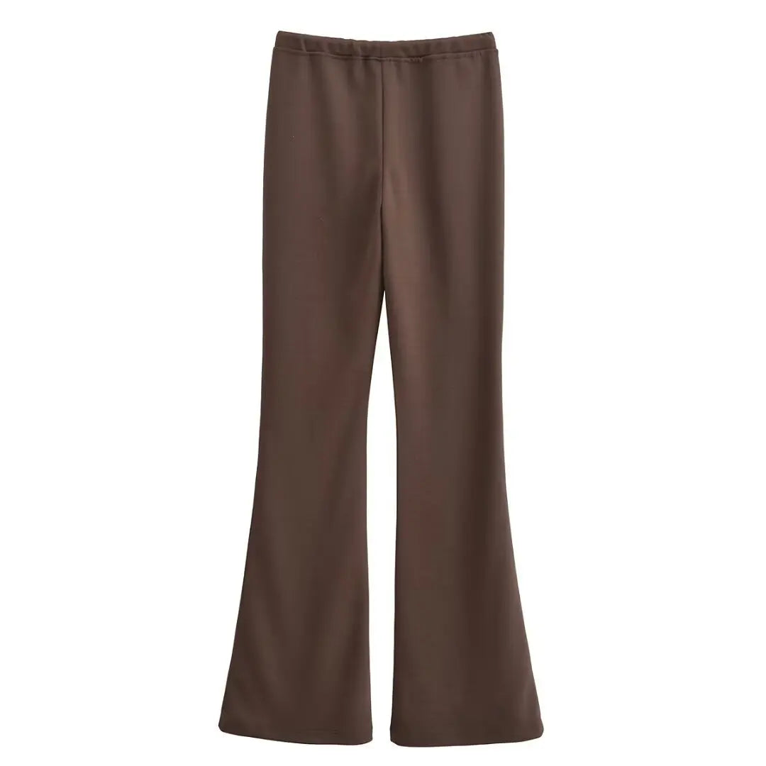 The high waist design of the pants enhances the silhouette, providing a flattering fit.